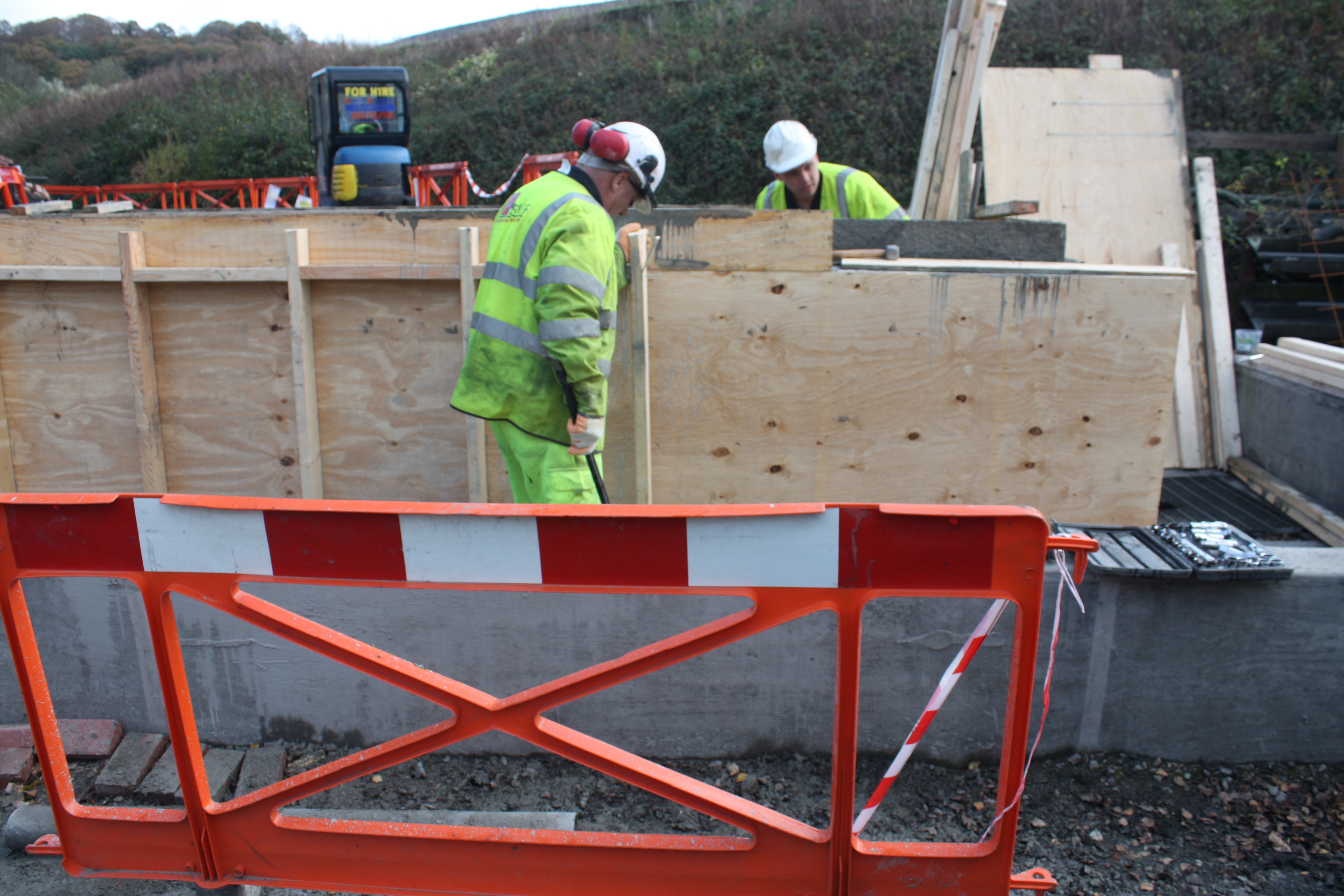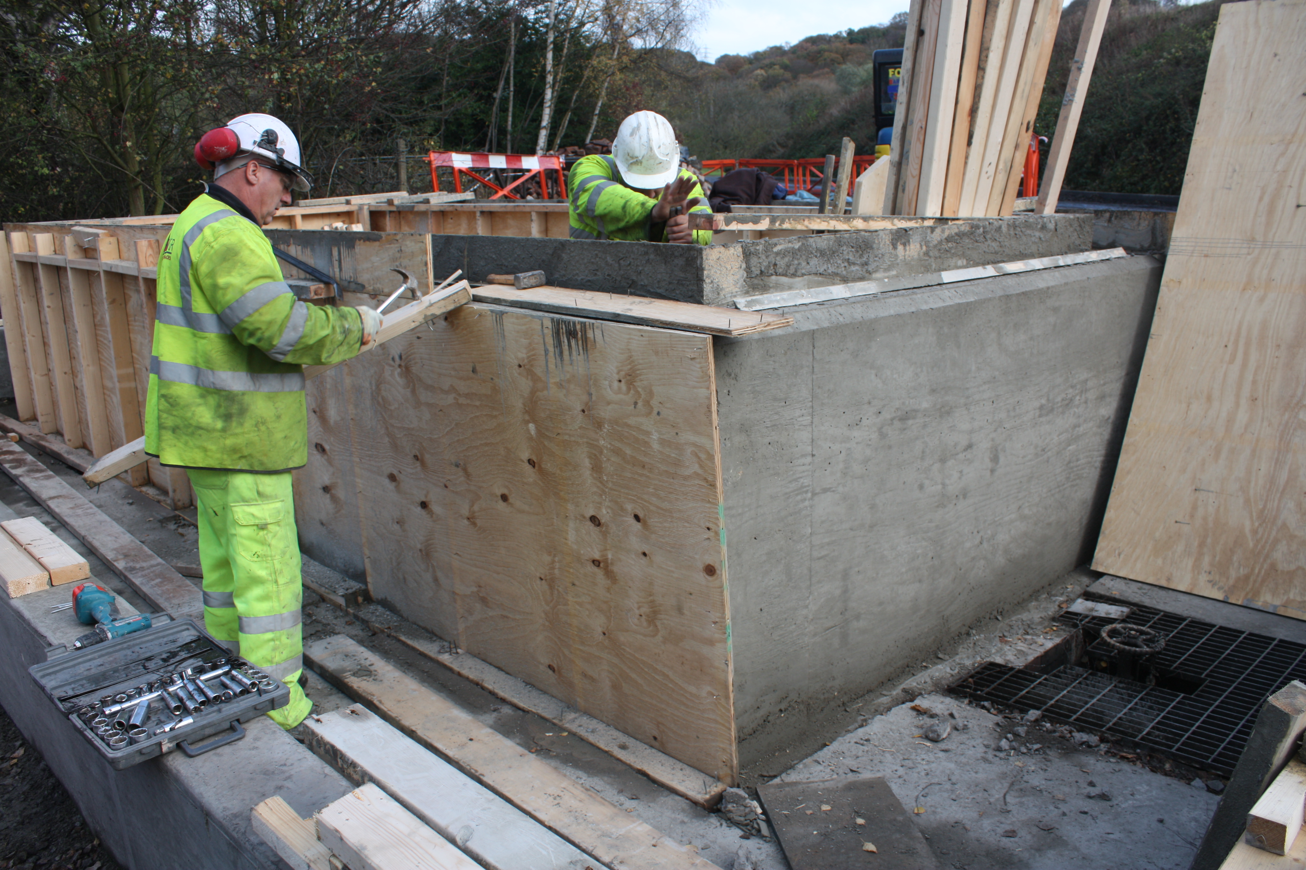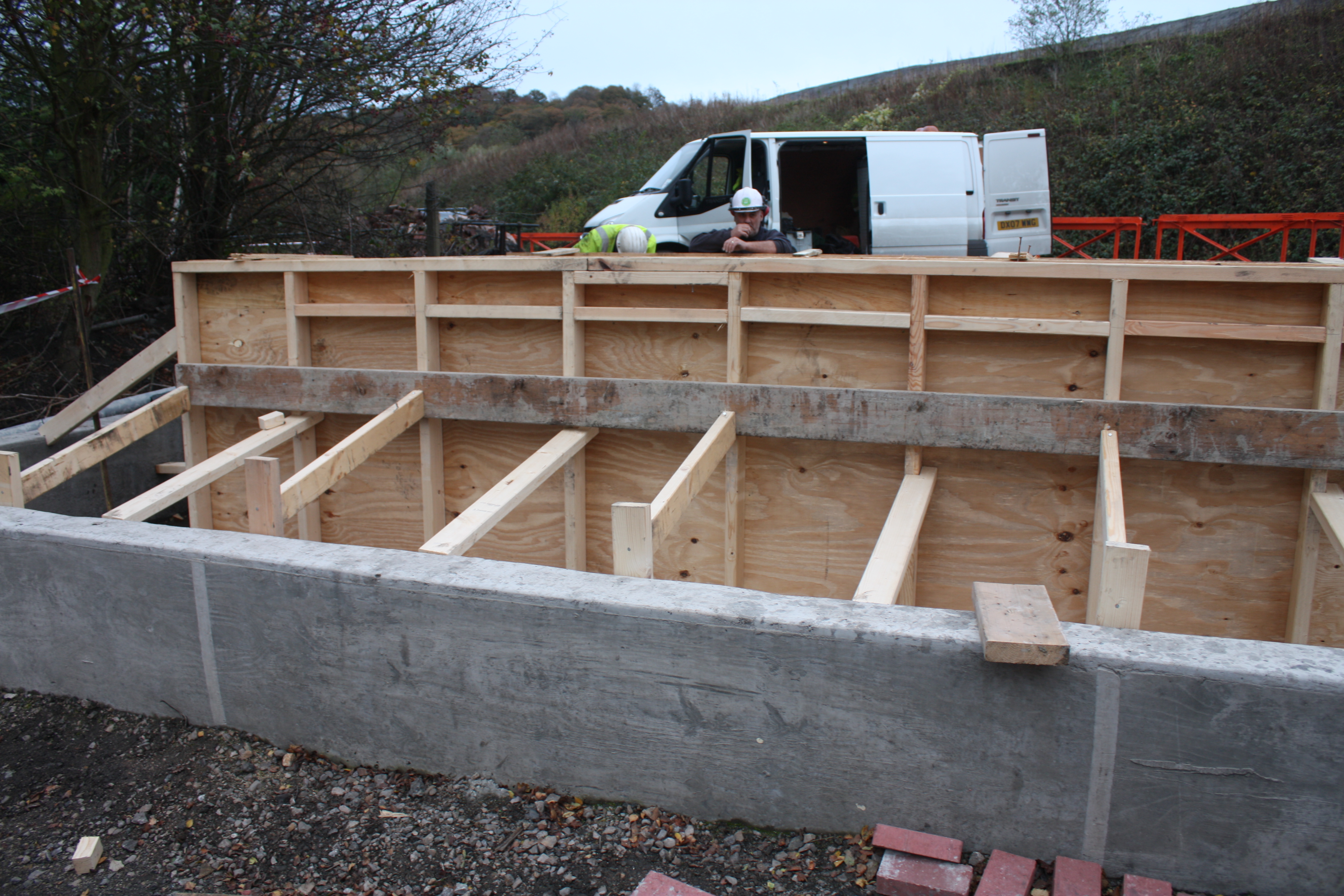 Timber shuttering was carefully installed and secured prior to pouring, ensuring accurate alignment and a clean, professional finish once removed. The completed structure provides a strong and secure containment solution suitable for industrial and commercial environments.